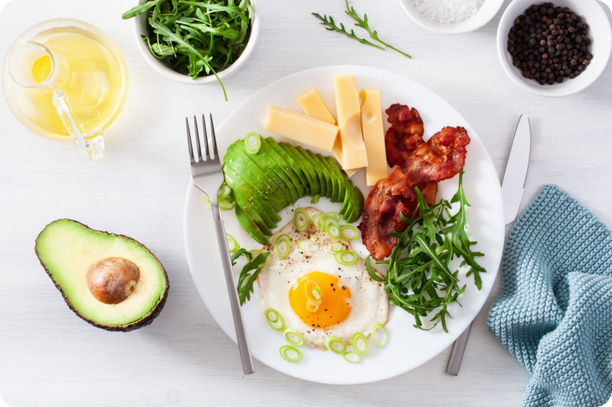 탄수화물의 양이 적을수록 빠르게 케토시스 상태에 진입할 수 있습니다. 식사 시 잎채소와 같은 섬유질이 풍부한 식품을 자유롭게 섭취하면서, 장의 건강을 유지하는 것이 좋습니다.