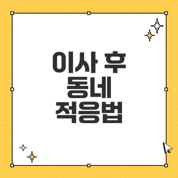 이웃과의 소통은 새로운 동네에 빨리 적응하는 데 매우 효과적입니다. 먼저 이웃에게 가벼운 인사를 건네보세요. 커뮤니티 모임이나 지역 행사에 참여하여, 이웃과의 관계를 쌓는 것이 중요합니다. 서로의 일상에 대해 이야기하며 정보도 공유할 수 있습니다.